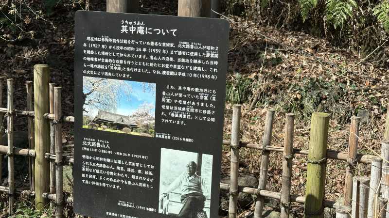清水谷戸入口付近の一角には、陶芸家・料理家として名を成した北大路魯山人邸跡があった。魯山人は大正15年(1926)に土地を借り、登り窯を築き、江戸時代後期に建てられた民家を移築。